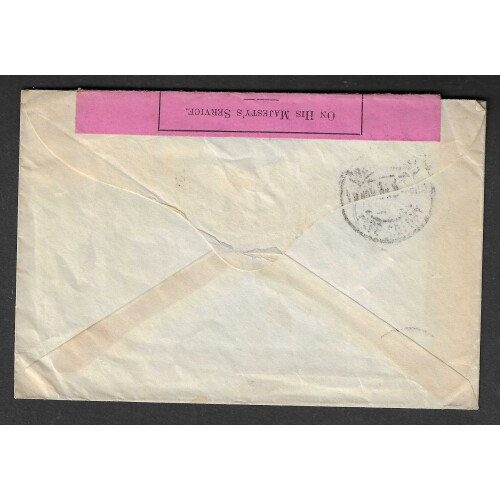 Boer War: British Army Field office wrinkled and creased cover bearing ERI ovpt 1d green and red tied Army Post Office incomplete CDS and ON HIS MAJESTY'S SERVICE / Opened under Martial Law black on pink label affixed across the top tied by PASSED PRESS CENSOR oval h/s.