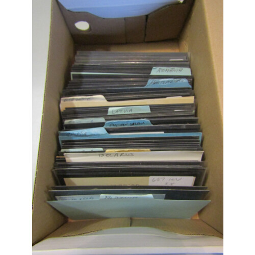 EAST EUROPEAN - Ex Dealer's stock of mainly mint / unmounted mint sets and singles in shoebox with better throughout including Albania 1925 Return of Govt, 1945 Red X set (2, cat £87 each), 1946 Balkan Games set of 7 U/M (Cat £134), 1962 Tourist set both perf & imperf U/M (Cat £50), 1965 Space Flight M/S both perf & imperf U/M (2 of each, Cat £40 a pair), 1952 Air surcharges 0.50l on 5l green (3, cat £49 each), 2.50l on 10l blue (3, cat £60 each), Bulgaria 1884 3 on 10s red used (Cat £100), 1927 air set m (Cat £85, 2 sets), 1931 Games both 12l mint (Cat £380), 10l brown mint (Cat £160), 1932 Air set m (Cat £285), 1958 Brussels Ex 1l imperf mint (3), Croatia 1941 shield ovpt set of 15 in mint blks of 9 (Cat £400), 1941 long issue run of 15 values in tete-beche mint blocks of 4, 1943 Youth Fund M/S imperf & perf (Cat £35 each), E. Silesia incl inv ovpt, Estonia German Occup set 3 mint, 1923 Air forgeries, Latvia 1921 airs imperf, 1930 Rainis Fund set m (2 sets, Cat £110 each), 1932 air set 2 m (2 Cat £34 each), Lithuania 1932 15th Anniv. ranges of vals in blks, 1933 Ausra set mint both perf and imperf (Cat £50 each), plus set in imperf PAIRS (Cat £100+), 1933 Welfare set mint (5, cat £32 each), 1938 Olympiad Fund set cto used (6 plus set in pairs, cat £75 each used), 1938 Scouts ovpt set mint (10 sets, cat £52 each), Montenegro Italian Occup. 1943 set 6 airs plus also in blocks of 4 (Cat £200), 1943 set 10 Nat. Poem Commems in blocks of 4 u/m (Cat £220), Romania 1906 Jubilee set of 11 mint (Cat £260), range of 1850s-70s earlies, 1905 1l black and green mint (4 cat £42 each), 1903 Opening of P.O 5l lilac mint (Cat £190, taken as is), 1931 Navy set m (Cat £70), Scouts set m (Cat £48 each, 6 sets), Air set 5 (Cat £39), 1956 Wildlife set mint imperf (Cat £123), 1958 Brussels Ex. strips (Cat £57, 2 sets), 1960 Olympics M/S (both mint Cat £53), etc, 100s. STC £6000+.