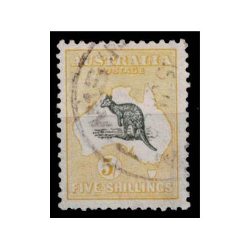 1915-27 Third Wmk Roo 5s grey and yellow cds used, few blunt perfs at base, SG 42.