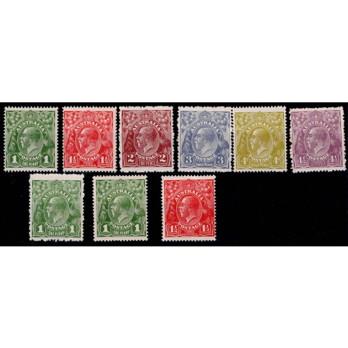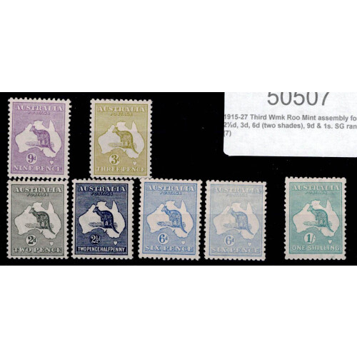 1915-27 Third Wmk Roo Mint assembly for 2d, 2½d, 3d, 6d (two shades), 9d & 1s. SG range 35/40. (7)