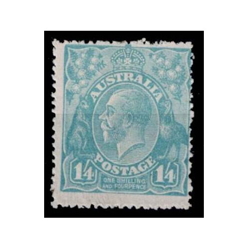 1915-27 Third Wmk Roo 1s blue-green hinged mint showing watermark sideways variety, centred left, SG 40 bw.