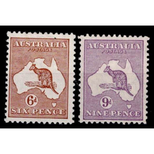 1929 Roo 6d brown and 9d violet both hinged mint, well centred, SG 107/8.