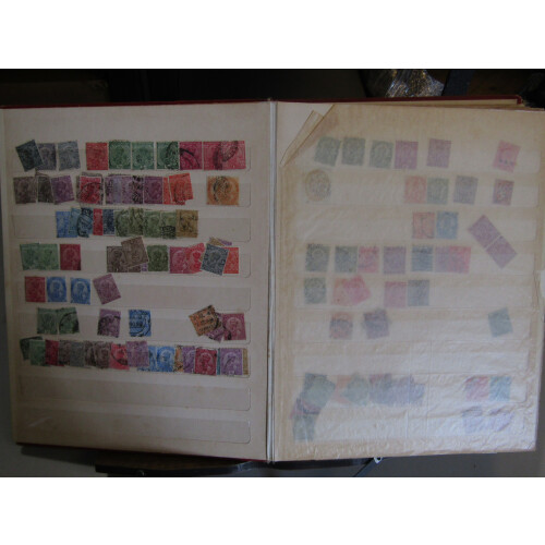 Large stockbook with useful duplicated ranges arranged haphazardly incl 1854 1a red, QV several to 5r used, QV defins with plenty of postmark interest, GV Experimental P.O. postmarks, officials, IEF GV to 1r mint, 1855 to 8a red used, ½a blue strip 3, 1a brown strip of 3, 1r grey mint (faults), few revenues incl GV 10r, Idar state, Patiala state, etc. 100s.