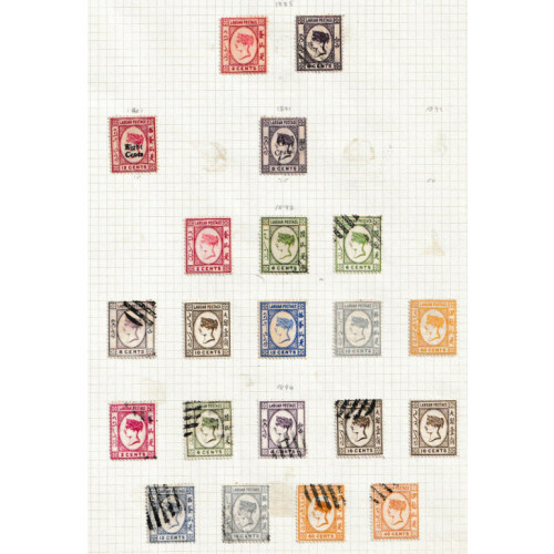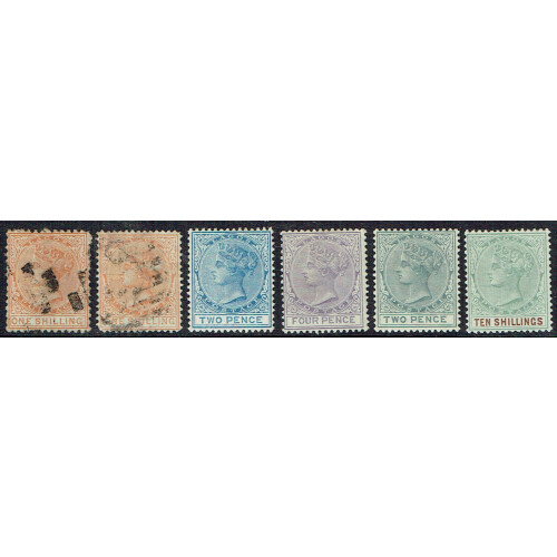 1874-1893 Mint and used collection with better throughout identified on leaves including 1874 1d & 4d mint (Cat £230), 2d to 1s used (Cat £199), 1876 1d mint, used 2d to 1s used (Cat £200+), 1882 1d mint (2, cat £110), 2d blue unused (Cat £200), 3d mint, 1884-6 six values to 1s mint plus shades (Cat £330), used to 6d, 1887-1902 set of 12 mint (Cat £225), 1893 surcharges mint plus two ovpt varieties, useful assembly, good cat value. (59).