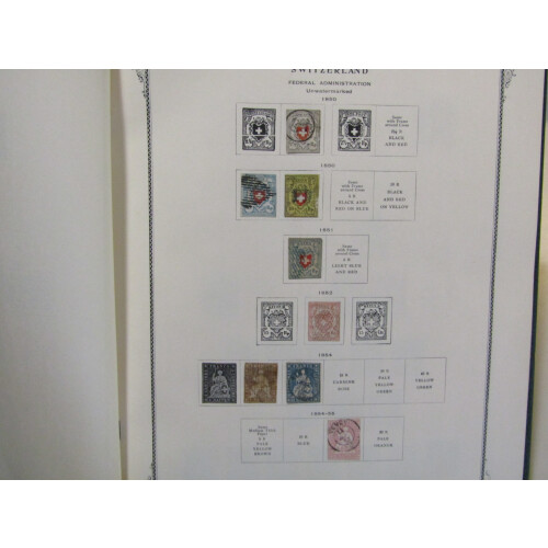 Useful mint and used collection in Scott printed album (fine) with useful incl 1854 2r grey (spacefiller cat £650), 40r green f.u. (Cat £100), 1862 to 1f gold m & u (taken as is), 1945 Peace 1f & 3f f.u. (Cat £270), useful pro-juventute sets m & u, National Fete sets, etc, 100s, ideal for expansion.