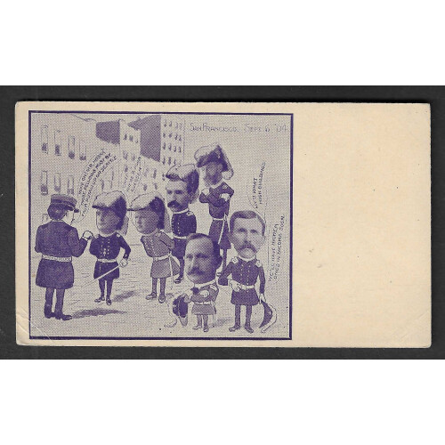 1904 Postcard of six officials in San Francisco (Sept 6) each with varying comment bubbles Move On Mr Hoska / Those fellows must be / from Puyallup or Seattle. Chief you're a poor guesser, My what high buildings, we will have higher ones in Tacoma soon printed in violet, 1c card to Tacoma. Fine.
