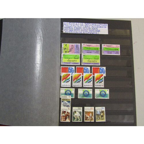 1953-1988 A well filled Lighthouse printed hingeless album in blue with a used range from 1913 to 1960s, then mint / U/M to 1987, good representation and clean lot for expansion, includes back of the book, A.A.T., Cocos (Keeling IS) etc, 100s.