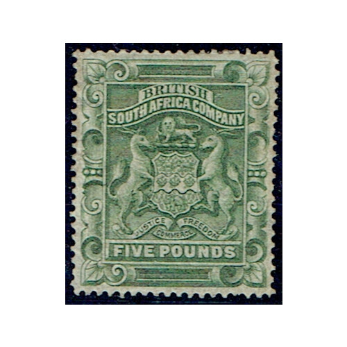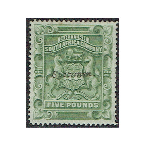 1892-93 £5 sage-green unused very fine with Specimen overprint in italics. Only listed by the UPU from 1898 onwards. SG 12s. Unlisted in Robson Lowe, taken 'as is'. Cat £1600 as normal mint.