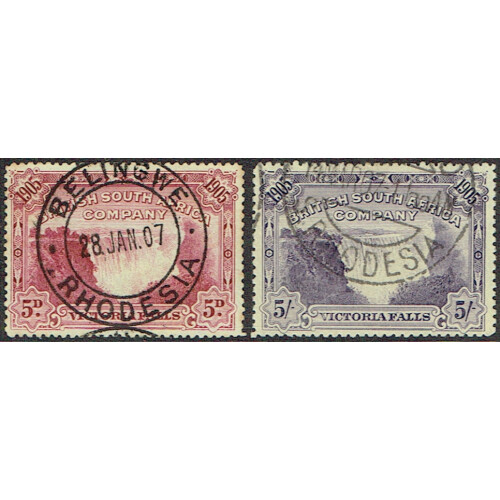 1905 Victoria Falls 5d & 5s fine used incl BELINGWE cancel, SG 96 & 99.