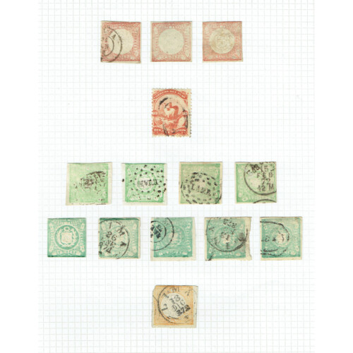 1867-70 Curved label 50r pale green sound used barred cancel, fine, SG 59.