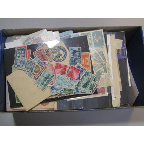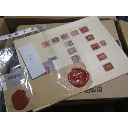 Interesting worldwide accumulation in a box with all sorts here noted: Malta revenues, Presentation folder by Perkins and Bacon, Transjordan on leaves, Netherland Indies, GB QV mint (SG 57 pl.22 strip of 3), BVI 1866 6d red unused (30), Samoa, Palestine, Ceylon, Heligoland, North Borneo, in various sheets and blocks, very varied and ideal for internet seller includes reprints and forgeries, taken 'as is'.