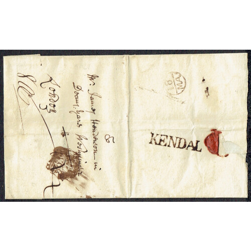 MANCHESTER 185 mileage round datestamp in red 1816 (24 Mar) E.L to Lincoln's Inn Fields London (public house) with manuscript charge mark, mileage 185 at the top of the circle, name reading outwards, fine h/s.