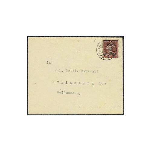 1921 (20 Feb) Typed cover Memel to Weidendamm (light tones) bearing 1920 40c on 20c brown-red tied MEMEL d/r cds. Plus second 1921 cover with similar stamp tied d/r cds with trade h/s. SG 19.