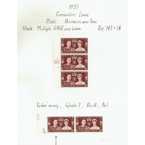Booklet Panes: 1937 Dark Colours collection of booklet panes of six identified on leaves including 2d orange (SG Q29a, wmk inverted cat £425, trimmed bottom perfs), 2½d dark ultr. (SG QB32a cat £375, trimmed perfs on right), then 1951 Light Colours ½d orange (2), 1d blue advertising panes of 3 (2), 1d blue pane of 6, 2d brown, 2½d red plus some pairs. Each identified by SG Specialised cat numbers STC £800+.