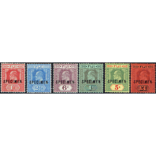 1906-12 SPECIMEN Overprint on set of six mounted mint 1d-£1 purple and black on red, fine appearance, SG 119s/124s.
