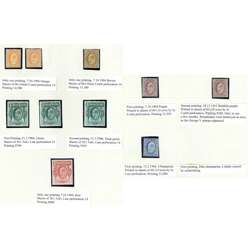 1904-12 Mint specialised and identified assembly ½d to 5s set with shades incl 3s green (3), 5s red, low values to 1s, two 6d orange shades, plus a few used, (22).