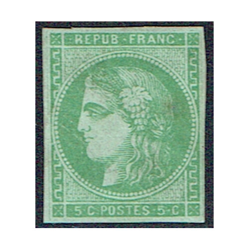 1870: Bordeaux issue stamp 5c Yellow Green slight toning used (no gum) (SG 157) .