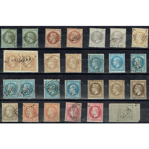 1862 - 70 Used Laureated issue to 5f with shades, Various pmks & no thins, (5f has damage to the corner SE) total cat value £1750. (27)
