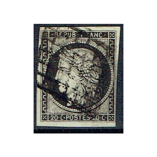 1849 20c black on white four margin example (very close on right side), with diamond grid cancel. SG 7.