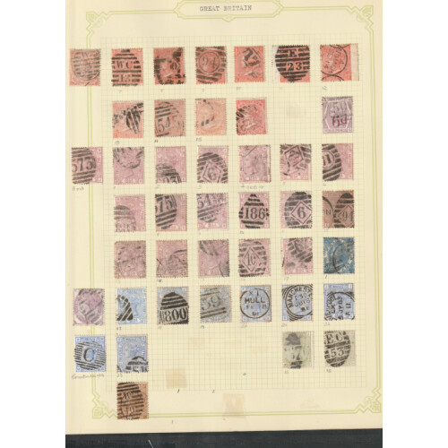 1862-1900 Useful fine used and sound used collection on three album pages including plate runs incl 1856 4d rose (2), 1s green, 1862-1880 4d red (11), 8d orange used, 1883 6d on 6d, 1880 2½d rosy-mauve plates 1 to 17, 2½d Ultramarine pl.17-23, 4d sage-green pl.15 & 16, 3d rose plates 4 to 21, 1s green plates 1, 4 to 13, 1s orange-brown pl.13 & 14, 1865 9d straw (straight edge), 1867 10d -red-brown, 1862 9d bistre, 6d grey pl. 12-18, 4d grey-brown pl.17 & 18, 1887 to 1s mint etc, enormous cat value. Approx 130.