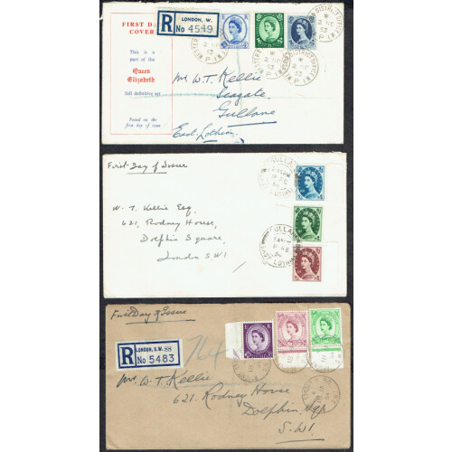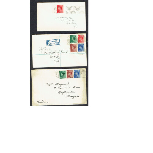 1936 (1 Sept) Set of three ½d, 1½d & 2½d on plain commercial and philatelic First Day Covers small stock of twenty three examples, one posted undercover to Postmaster at Ramsey IOM, then 28 1d red tied single franking on 14th September FDI. Mixed to fine. (SG 479/484). Huge cat value. (51 covers).